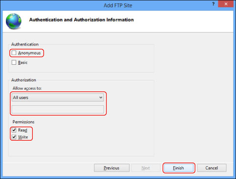 Deselect [Anonymous] for <Authentication>.