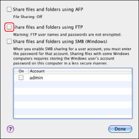 Start the FTP service on Mac OS X.