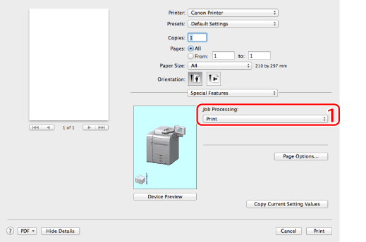 If you are using Mac OS X 10.7 or later, clicking [Show Details]/[Hide Details] at the bottom of the screen enables you to display or hide options.