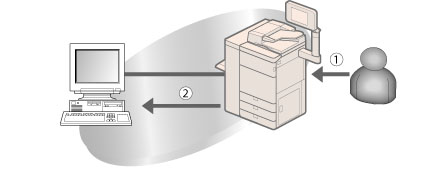 This operation is similar to the "Scan and Send" functions. You can scan originals set in the feeder or on the platen glass of the machine, and send them to a computer which is connected to the machine via network. You can easily select destinations as computers, which are in the same domain and are equipped with the standard driver of the operating system, are displayed automatically.
