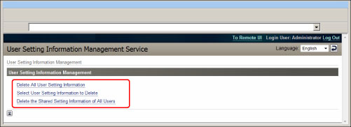 You can also delete the shared setting information of all users, as well as specific user setting information.
