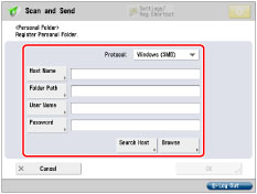 You can register user information from  on [Scan and Send] Basic Features screen, [Access Stored Files] Send screen, and [Fax/I-Fax Inbox] Send screen.