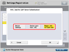 The following settings are required to use different authentication information for each user. Each user is required to register LDAP server and authentication information for accessing the LDAP server by following the procedures below.