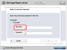 You can install a key pair file from a computer in order to perform the following: To use encrypted SSL communication for IPP printing, e-mail and I-faxes, the Remote UI, MEAP functions via a Web browser, and device information delivery; to use the SMS management function of MEAP; and, to confirm Department IDs and PINs.