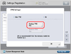 For the backup of the TPM key, it is recommended that you use a USB memory with free space of 10 MB or more.