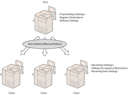 If [Restrict Receiving Device Information] for <Receiving Settings> is set to 'Off', the machine can receive device information delivered from different machine models. (See "Setting the Receiving Machine.") However, some information may not be delivered correctly.