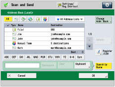 Press [Search by Name] again to close the screen for narrowing the address book and return to the previous screen.