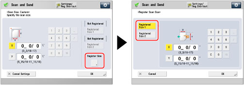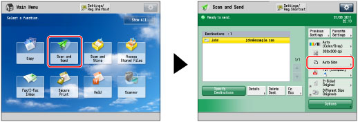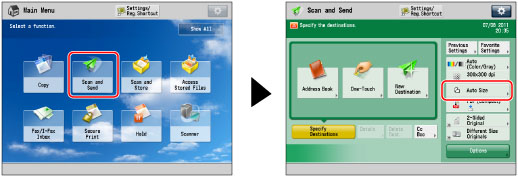 (Main Menu) → [Scan and Send] → press the scan size button.