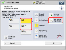 If you want to set both digital signature and encryption on the PDF file, specify the settings for encrypted PDF as follows:
