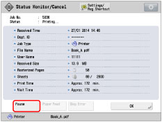 To pause/resume the printing process of the copy job, select [Print]. If you select [Copy], the buttons necessary for this operation do not appear.