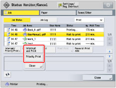 You cannot perform Interrupt/Priority printing by selecting an interrupt print job that is waiting to be processed.