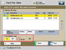 When you select [On] for <I-Fax Memory Lock>: The end time for Memory Lock is displayed.