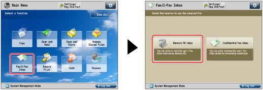 (Main Menu) → [Fax/I-Fax Inbox] → [Memory RX Inbox].