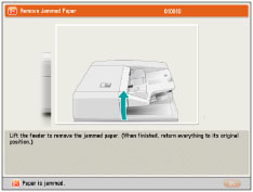If a paper jam occurs in the feeder, you cannot continue operating the machine. Follow the directions on the touch panel display to clear the paper jam. (See "Duplex Color Image Reader Unit-H1 (Optional).")