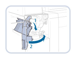 When returning the paper folding unit to its original position, be careful not to get your fingers caught, as this may result in personal injury.