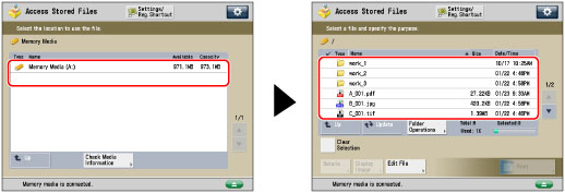 (Main Menu) →[Access Stored Files] → [Memory Media].