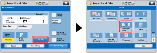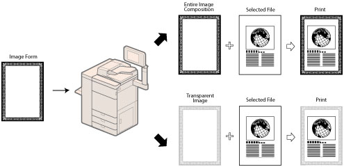 To use the Superimpose Image mode, the image form must be registered in the machine beforehand. (See "Registering Forms for the Superimpose Image Mode.")
