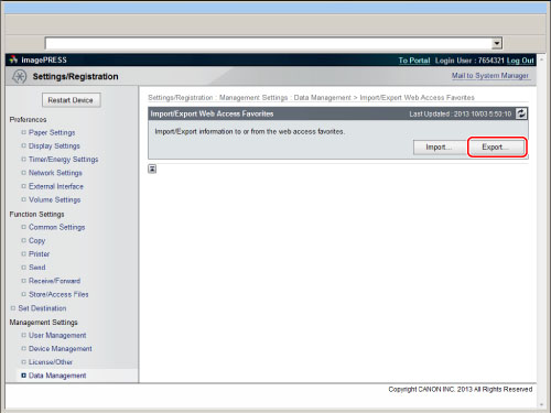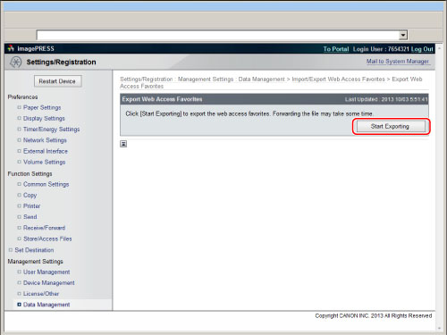 » Web Access » Using Favorites » Exporting/Importing Favorites as a File » Exporting Favorites to a Computer