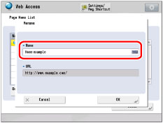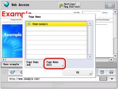 You can change the name and URL. If you change the URL, the contents of the saved screen do not change. The screen currently displayed is saved as a Page Memo.