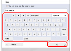 For instructions on entering characters, see "Entering Characters from the Touch Panel Display."