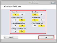 on the control panel enables you to set various tones to sound, according to the operations performed or status of the device.|