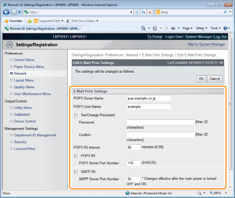 Before performing the setup, see "Attention (How to Specify the Settings for E-mail Print)."
