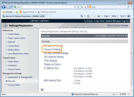 When a key is not selected for SSL, [Use SSL] cannot be checked.