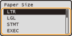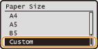 After the default paper setting is registered, the paper setting screen is not displayed when paper is loaded, and the same setting is always used. If you load a different paper size or type without changing the paper settings, the machine may not print properly. To avoid this problem, disable the default setting by selecting <Off> in step 3, and then load the paper.