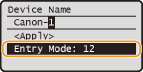 to switch the type of text that is entered. The currently selected type of text is indicated as <Entry Mode: A>. You can select from three types : <A> (upper case) , <a> (lower case), or <12> (numerics).