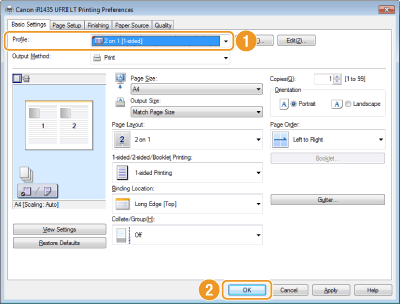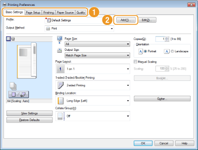You can change the settings of a selected profile. In addition, the changed settings can be registered as another profile.