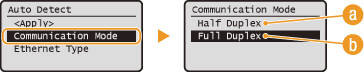 select <Half Duplex> or <Full Duplex> .![]() <Half Duplex>Alternately sends and receives communication data. Select when the machine is connected to a networking device using half duplex.