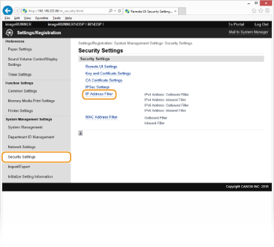 Check for entry errors If IP addresses are incorrectly entered, you may be unable to access the machine from the Remote UI, in which case you need to set <IPv4 Address Filter> or <IPv6 Address Filter> to <Off>. IPv4 Address Filter IPv6 Address Filter