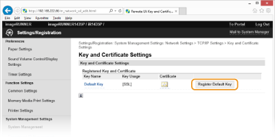 Click [Key and Certificate...] in [SSL Settings].
