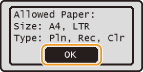 Check that the size and type of paper displayed on the screen is loaded in the machine, and press