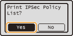 You can print a list to check the policy names and IPSec settings currently registered in the machine.