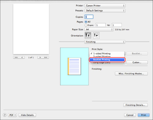 On the [Detailed Settings for Booklet] dialog box, displayed when [Booklet] is clicked, you can specify the detailed settings for the booklet, such as its layout.