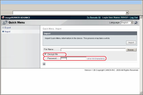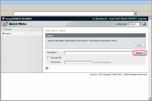 Only administrator can export/import the Quick Menu from a computer.