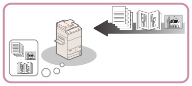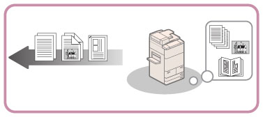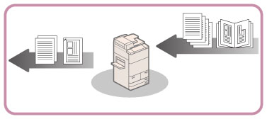 This machine makes effective use of memory to perform print operations efficiently. For example, as soon as the machine has scanned the original that you want to copy, it can immediately scan the next person's original. You can also print from this machine, using a function other than the Copy function. This machine combines multiple operations, so that not only copies, but various types of jobs are placed in a queue before being processed.