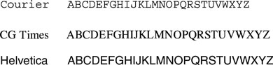 Typeface refers to the design of the characters and symbols. The following figure shows an example of some typefaces.