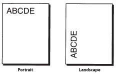 Orientation refers to the direction of printing. The printer function can print using two different paper orientations: portrait and landscape. With portrait orientation, text is printed across the width of the paper (short edge), and with landscape orientation, text is printed across the length of the paper (long edge).