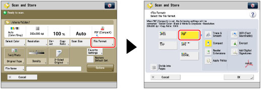 This mode is only available for storing files in the Advanced Box, the Advanced Box of another imageRUNNER ADVANCE machine on the network, or memory media.