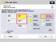 Even if you select [OCR (Text Searchable)], text may not be detected correctly in some cases.(See "If OCR (Text Searchable) Performs Inadequately.")