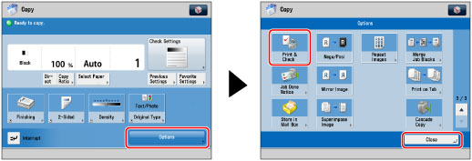 Press [Options] → [Print & Check] → [Close].