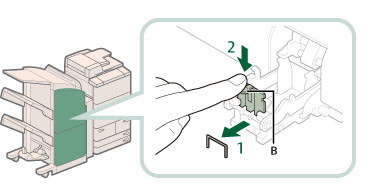 Before clearing a staple jam in the saddle stitcher unit, remove all paper that has been output to the booklet tray.