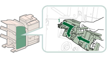When you have cleared the staple jam, be sure to manually reposition the staples in the saddle stitcher unit. (See "Saddle Stitch Staple Repositioning.")