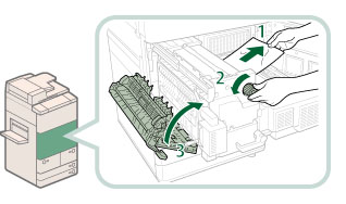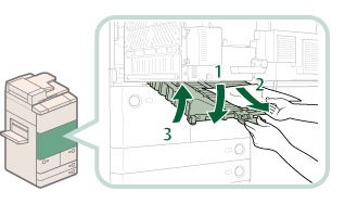 If you cannot pull out the jammed paper, proceed to the next step. Do not pull out jammed paper by force, as this may leave torn pieces inside the machine and cause the machine to malfunction.