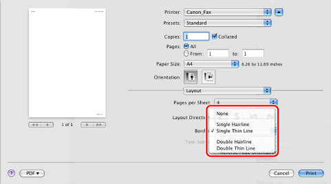 Select your fax → [Layout] → the number of pages you want to output onto one sheet of paper from [Pages per Sheet].