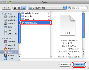 The fax driver for Mac supports only CSV format files that use commas as separators.