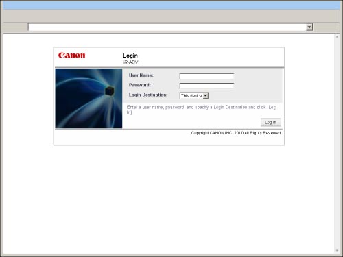 Select the login destination, and enter a user name and password to log in to the Remote UI or a MEAP application (including login applications).