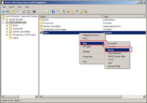 Start the Active Directory management tool, "Active Directory Users and Computers."